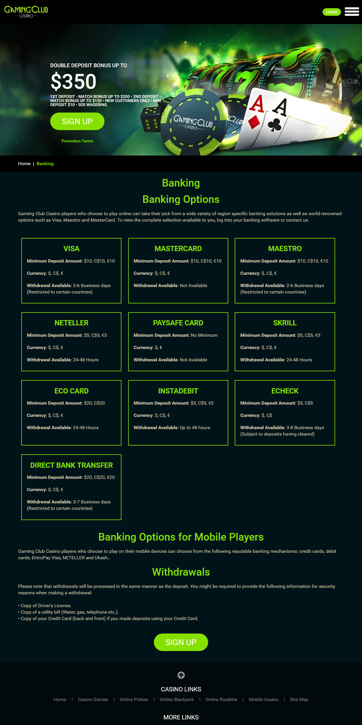O cassino online revisado foi fundado em 1994 e, portanto, é um dos cassinos mais antigos e estabelecidos há muito tempo do mercado. A reputação impecável e a transparência financeira impecável são o que faz o cassino se destacar em meio à concorrência. Como qualquer site orientado a microgaming por aí, o Gaming Club oferece a aplicação interna da Microgaming que atua como um método alternativo de acesso livre de navegador aos jogos. Além disso, o cassino on-line tem uma justiça de jogos oficialmente certificada avaliada pela ECOGRA, uma empresa de auditoria mais bem classificada. Os jogadores podem clicar no link de porcentagens de pagamento no rodapé do site para visualizar um documento em PDF que lista pagamentos relacionados para todos os jogos oferecidos pelo cassino. O Gaming Club também administra um blog onde publica artigos sobre os Pokies lançados recentemente e outras informações interessantes relevantes para jogos de azar e esportes. O blog é normalmente atualizado a cada semana.Obtenha bônus de US € 350!