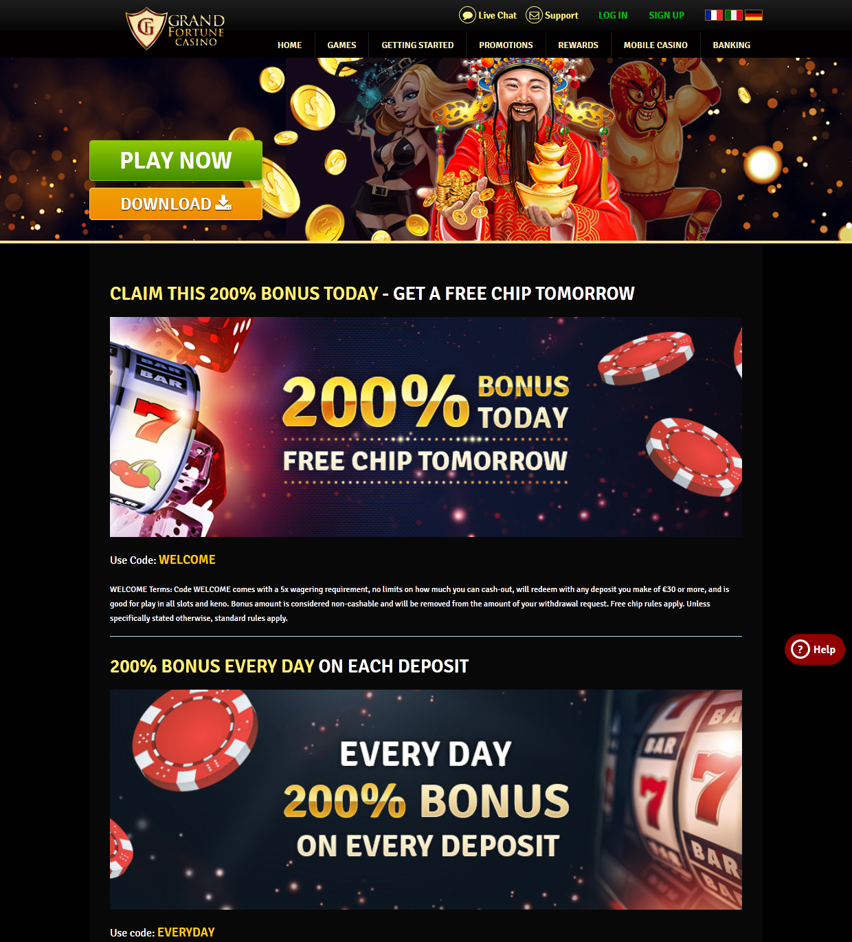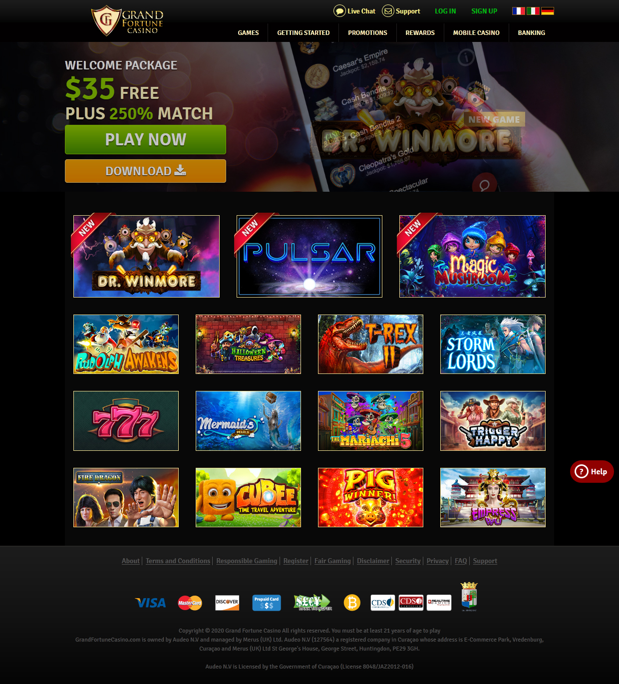 o jackpot fortuito vence, as promoções em abundância e os agentes de suporte amigáveis são apenas algumas coisas que um usuário da nova zelândia enfrentará no grand fortune, um cassino on -line legal dirigido pelo software rtg. antes de prosseguir com um extenso conjunto de Pokies, um novo usuário é convidado a reivindicar um bônus de boas -vindas de 200% com uma condição de apostas fenomenalmente baixa do x5. mas este não é o fim do programa de bônus - ofertas diárias, generosos giros gratuitos com baixa wr e outros bônus emocionantes acompanharão um jogador da austrália o tempo todo. não há problemas com os pagamentos, pois todas as solicitações são processadas de maneira rápida e profissionalmente. a grand fortune está disponível em dois formatos: como um aplicativo rtg de marca que deve ser instalado em um computador e; como um navegador normal, jogue o cassino com acesso direto a todo o conteúdo de jogos. nenhuma qualidade está comprometida no modo de jogo.