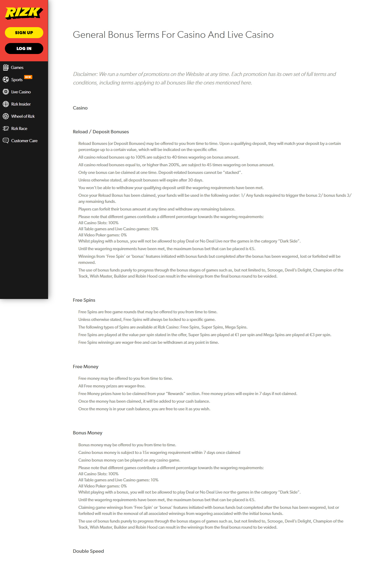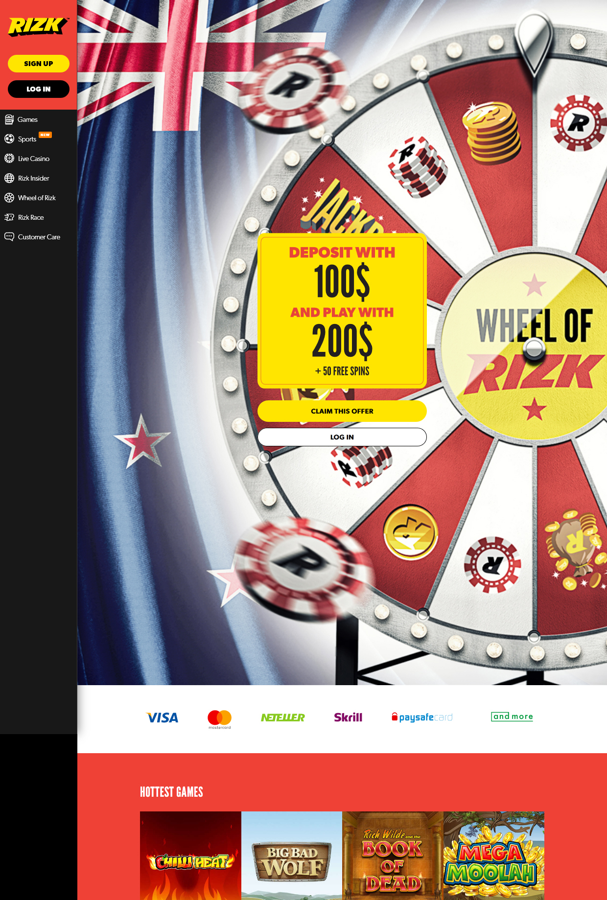 para começar no Rizk, o cassino oferece um bônus de boas -vindas de 100% até us € 100, que tem o requisito de apostas do x40 (d+b). além disso, um jogador recebe 50 rodadas gratuitas (distribuídas em partes iguais ao longo de cinco dias seguidos). os fundos ganhos em rodadas gratuitas não têm wr para que os jogadores possam usá -los instantaneamente depois de vencer.