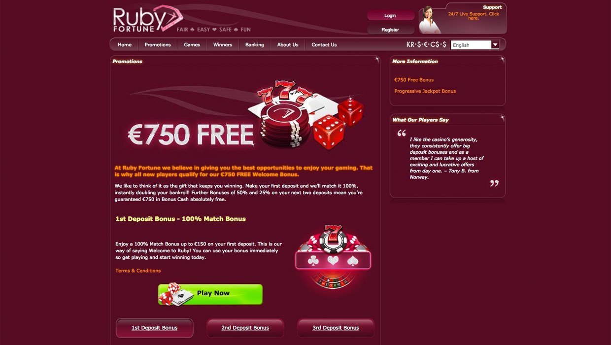 A Ruby Fortune opera sob o guarda -chuva do grupo Palace, dono de vários cassinos online, todos alimentados por microgaming. O lema da fortuna rubi é Justo, fácil, seguro, divertido, e eles parecem fazer o possível para seguir esta regra. a aparência do site, seu estilo gráfico e apresentação geral parecem antiquados em contraste com as tendências modernas. falta o brilho, o brilho e a intensidade visual que muitos cassinos on -line contemporâneos tendem a ter; no entanto, o cassino revisado contém Pokies de primeira classe da linha de microgaming e um sistema de bônus razoável. você pode ter certeza de que a justiça do jogo não está comprometida na ruby fortune, que é certificada por auditorias regulares de ecogra e seu selo de aprovação emitido ao cassino online.