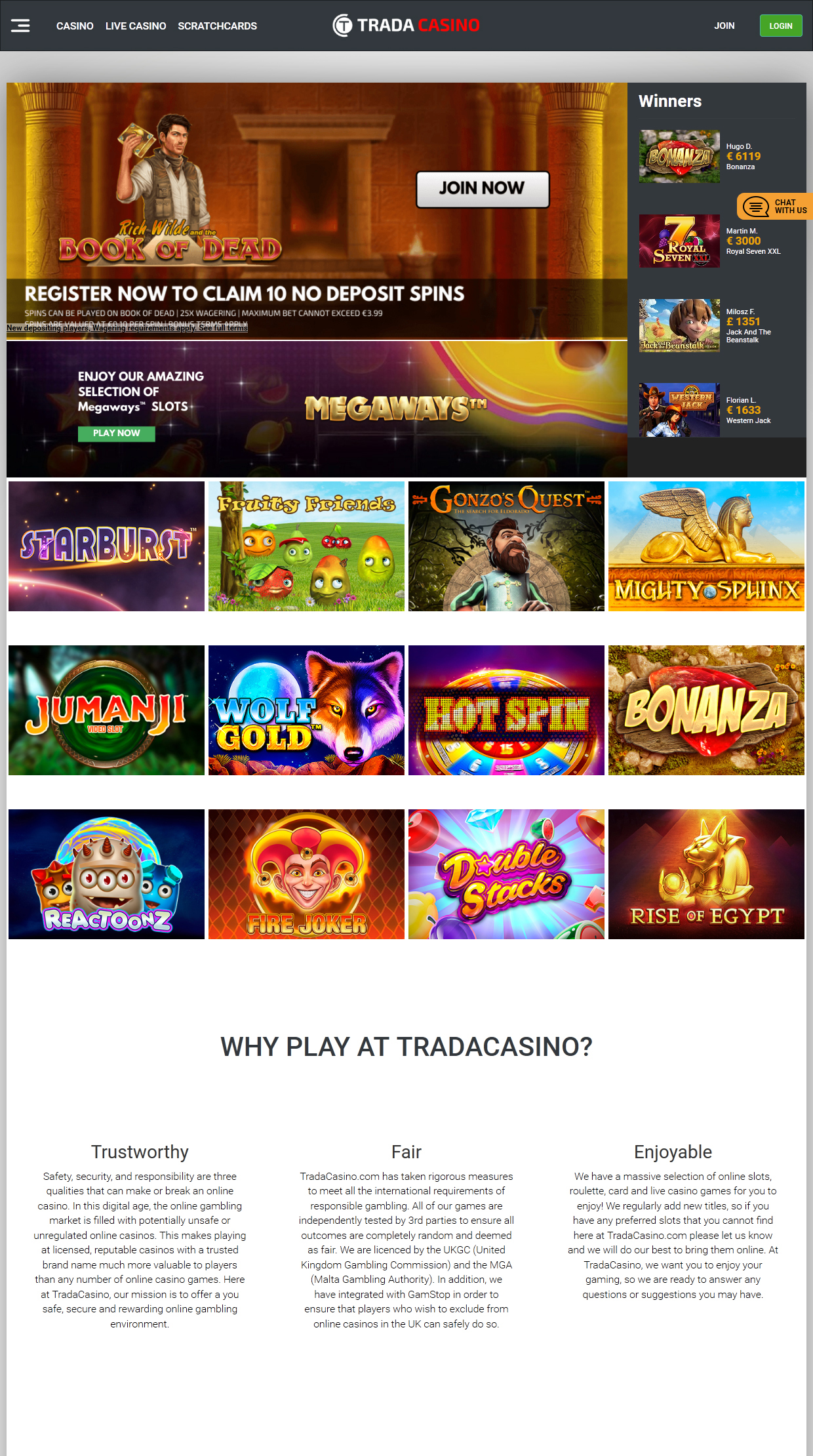 o cassino tradicional parece moderno e imponente. suas páginas da web são organizadas, com a maioria das entradas de menu sendo escondidas dentro de um botão especial no canto superior esquerdo. para se inscrever com o cassino, um usuário precisa clicar no botão de junção, preencher vários campos necessários e ver o email pessoal - esse procedimento não difere muito de seus pares. jogar em um local de jogo licenciado e legal é uma questão de segurança pessoal e o trada casino garante tranquilidade para seus jogadores, pois possui uma licença válida emitida pela malta gaming authority e pelo reino unido, sendo ambos órgãos reguladores respeitáveis.