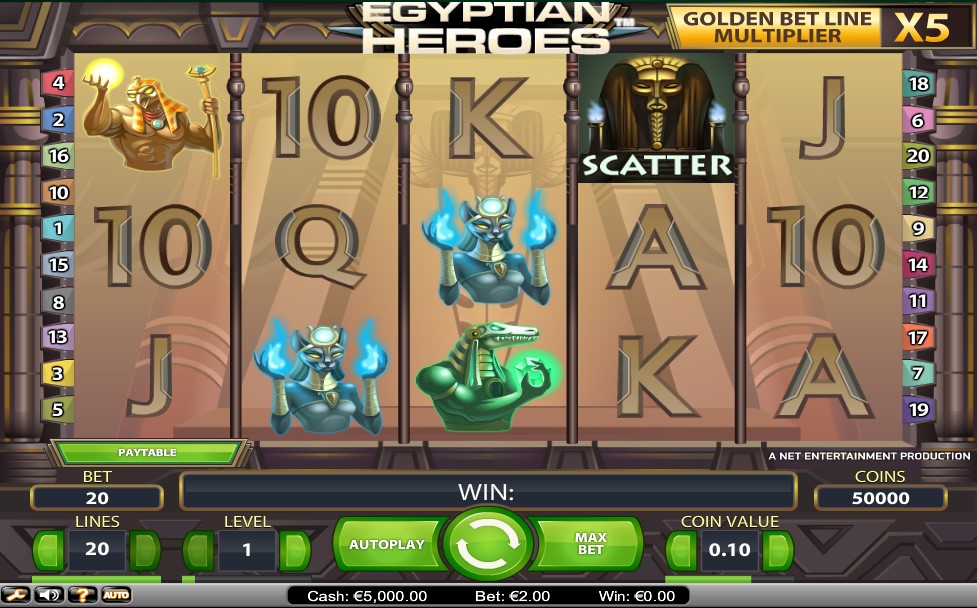 os heróis egípcios são um pokie de 5-rel 20-payline com expansão selvagem e giros gratuitos. durante rotações gratuitas, todo o carretel 3 se transforma em selvagem durante a duração do recurso. o jackpot potencial máximo é de us € 100.000.