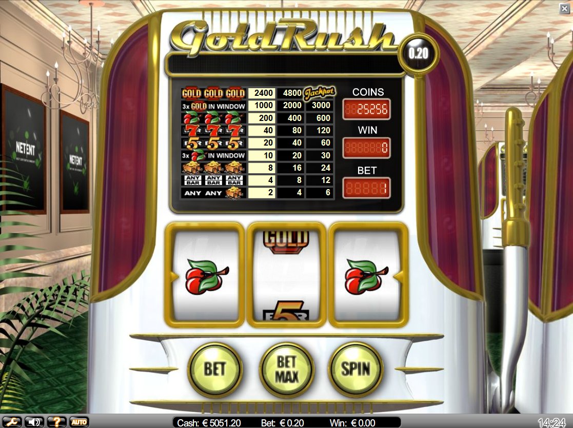 o Corrida do ouro é um pokie progressivo com 3 bobinas e 1 linha de pagamento. é um jogo muito fácil, com apenas três tamanhos de aposta (us € 0,2, us € 0,4 e us € 0,6) e a recompensa regular máxima de us € 960. é o jogo mais preferido para jogadores que gostam de jackpots progressivos e um design de jogos da velha escola.